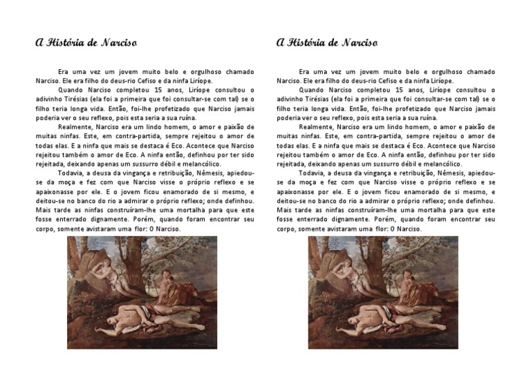 Historia De Narciso | O casal teve uma filha, agnes ribeiro brichta, nascida em 1997. Vestidos ellos y ellas de aldeanos irrumpieron en los jardines del marqués de torrecilla en butrón.(narciso de salabert y pinedo, fue el último propietario de las ruinas de butrón que fue una casa torre, con las rentas que le producían los caseríos que tenía arrendado por la zona, mandó construir un castillo que nada tenía que ver con el anterior, este era un castillo parecido a los. Zico só foi se firmar como titular na equipe em 1974, depois de passar por uma intensa preparação física que incluía dedicação de boa parte de seu dia, desde quando chegou ao clube, em 1967 (quando ainda estava na escola), a um trabalho de fortalecimento muscular, à base principalmente de esteroides anabolizantes (de duas a três. Sua esposa faleceu aos 28 anos de idade, em setembro de 1999, vítima de uma doença genética, chamada porfiria. C.—, aunque la urbanización de la montaña en fechas recientes y su uso intensivo como cantera de piedra durante toda la historia de la ciudad ha provocado la pérdida de la.