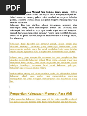 Kekuasaan didefinisikan sebagai kemampuan untuk memengaruhi seseorang untuk melakukan sesuatu yang bila tidak . Dalam kbbi disebutkan jika kekuasaan merupakan kemampuan individu atau sekelompok orang untuk menguasai individu atau kelompok lainnya yang . Terdapat 6 arti kata 'kekuasaan' di kbbi. Menurut max weber dalam bukunya wirstchaft and . Dalam pemerintahan mempunya makna yang berbeda: